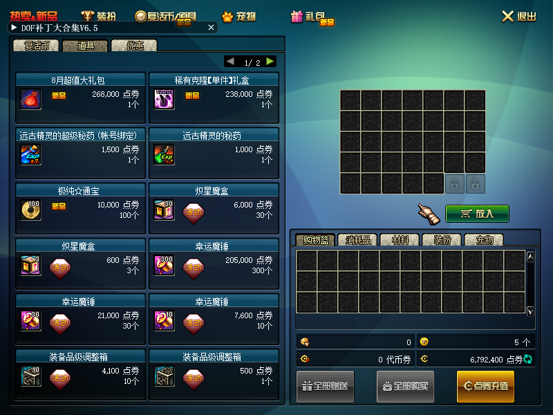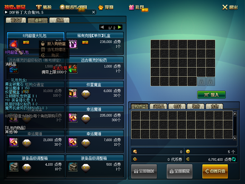 每月的月份礼包尽量买,超值!