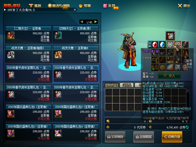 要注意虎年礼包的白虎称号不适合刷图,刷图党注意。