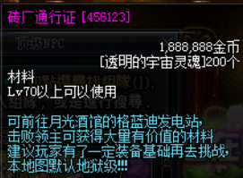 当然你付出了努力也会得到回报,安图恩领主及所有绿名怪会掉落大量的稀有材料,领主更是有一定的机率直接掉落荒古武器,首饰,+12-+15装备增幅卷,保护卷,宝珠等稀有道具,如果不幸被领主击退,可以前往月光酒馆的发电站4张图,也是本服的搬砖图,小怪会掉落大量的魔刹石,领主会掉落金币,DIY碎片等稀有材料,当然获得相应奖励的同时,也需要获取进入门票,门票就在酒馆的NPC进行售卖,玩家可以利用深渊分解的材料进行兑换,击杀发电站BOSS获得丰厚的奖励,注:发电站默认为王者级,谨慎误入!!以免浪费门票!!!
