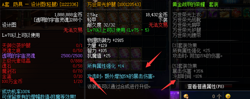 防具进阶:75史诗套:A套:B套:赫尔德套:超界:终极套