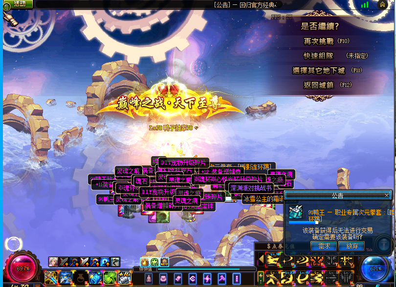 同时没用的史诗装备全部可以分解,获得的<透明宇宙灵魂>也是本服稀缺的物资,兑换各种称号,宠物,所需要的材料,闲暇之余推荐去搬搬砖,可以和游戏大佬换取等值的装备武器!!!