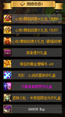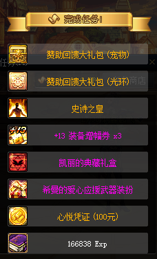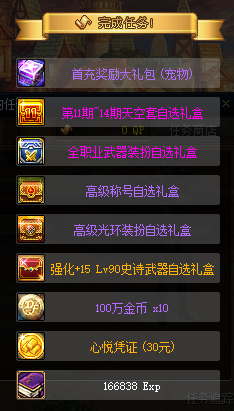 创建完角色点赛丽亚完成新手任务,获得新手豪华大礼包,内含和一堆新专用的东西。