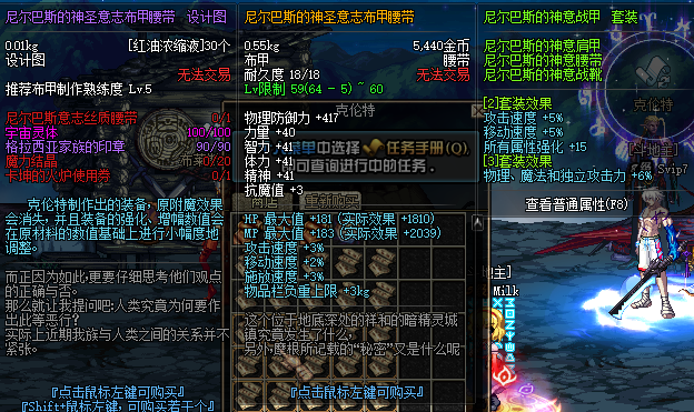 当冒险家到达60级后,即可体验到本服的盗墓者密道,异界副本及强者之路副本,这些副本均需要一定的魔抗值,魔抗值不足会扣除一定的攻击力,HP,MP惩罚。除了蹭车之外,拥有一套魔抗值装备尤为重要。