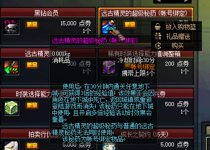 本服挂机送代币券,冒险家可以通过代币券购买时装礼盒,时装礼盒物品不同,也有称号在里面,不同时装属性不同