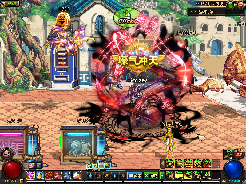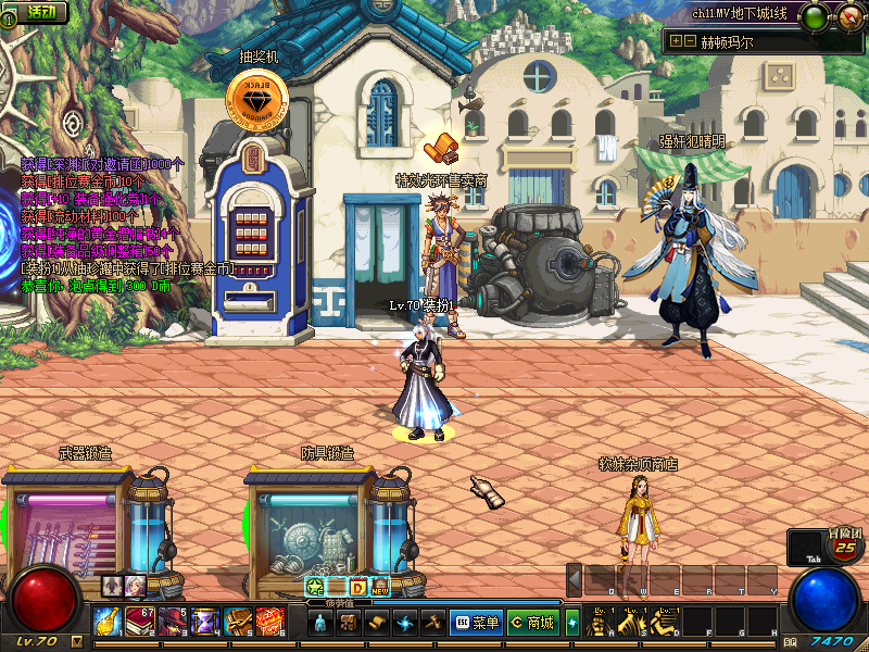 进游戏点击赛利亚领取新手大礼包!!直升70礼包、装备、透明套、称号以及豪华内容,请仔细阅读!!!点击赛利亚完成移动药剂权限!装备穿戴齐全开始肝图!前期推荐刷深渊乌龟!