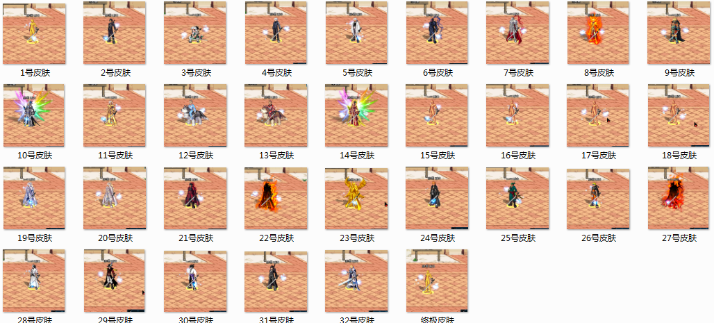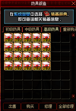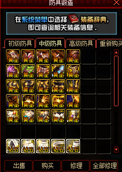 青铜套→白银防具套→黄金防具套→钻石防具套→超级防具套。